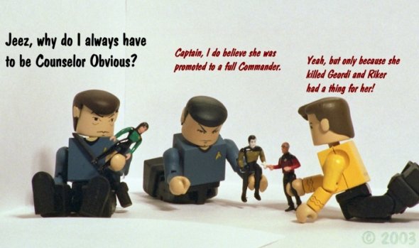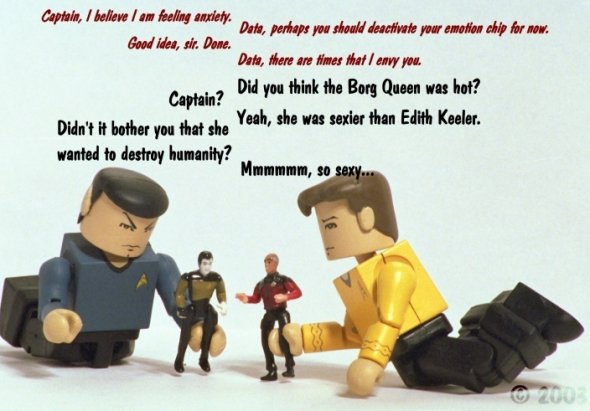 The Innerspace figures return for a little playtime. Oh my, look at all the Star Trek references! It's fun to imagine a timeline that allows Kirk and Spock have toys of Picard and Data.