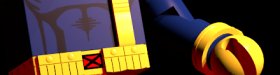 Okay, enough complaining. Focus on the good parts. I love how Cyclops turned out. (Apart from the hair.) It's not an exact replica of the Minimate, but I don't care. The way the light reflects off the plastic, the texture maps, the gold visor, even the little X logos make me smile.