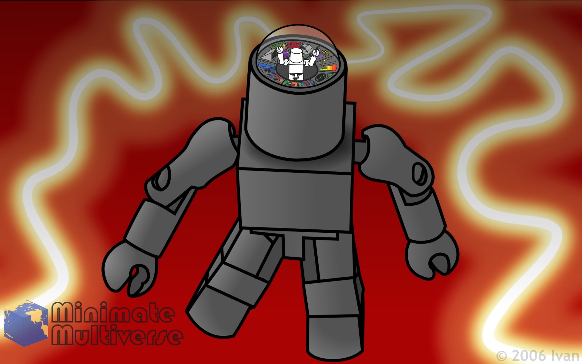 Yay, giant Minimate robots... driven by Minimates. How's that for inspirational? Okay maybe that's not going to inspire anyone, but it's still cool. I wonder how many crew members it would take to operate these vehicles. I think the one with the red background probably only needs the single pilot, but the first one is just so much more massive. There's got to be a whole team in the torso flipping switches and turning cranks.