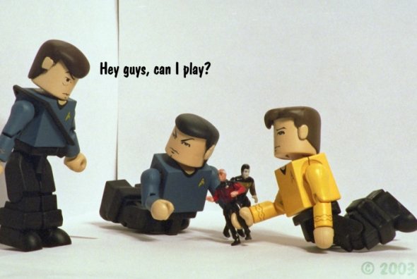The Innerspace figures return for a little playtime. Oh my, look at all the Star Trek references! It's fun to imagine a timeline that allows Kirk and Spock have toys of Picard and Data.