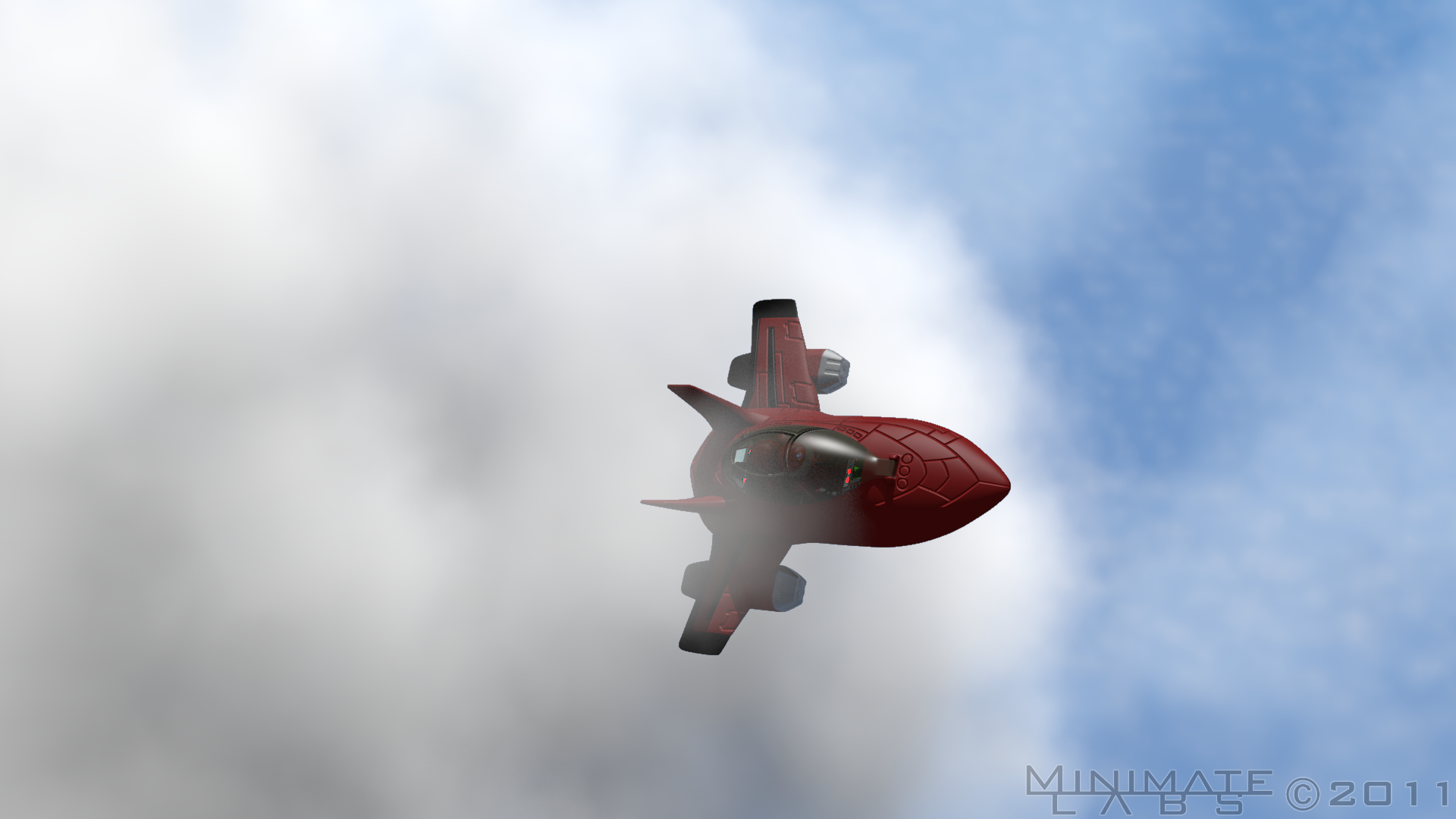 This cloud shot was an early test. The plan was for the jet to break through the cloud and create a wake that would distort the cloud realistically. But for whatever reason, I couldn't get the cloud particles to behave. I wanted most of the cloud to maintain its shape while a small percentage trailed after the jet. Despite my efforts they either all moved or none of them did. Sometimes they repelled each other and dissipated the cloud entirely.