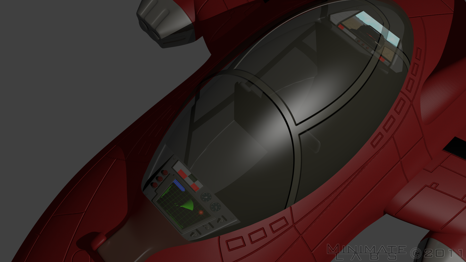 This last image is a test shot without the final materials. The canopy is hidden for a better look at the control panels. I really like these simplified 'clay' renders.